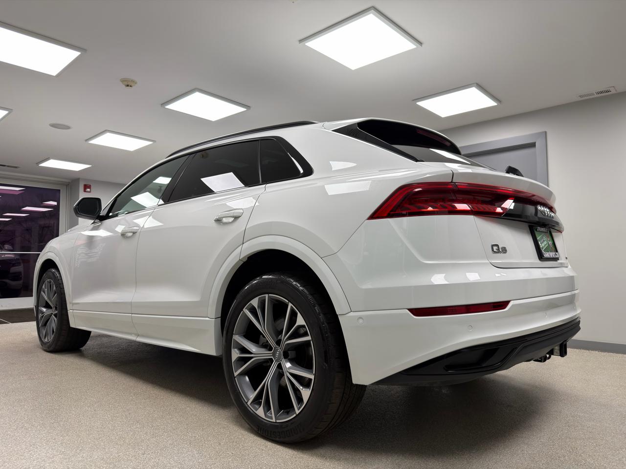 Get ready to hit the road in style with this pristine 2021 Audi Q8 in a sleek white color. This luxury SUV is not just a mode of transportation, it's a statement. With its powerful engine, smooth handling, and spacious interior, every drive feels like a VIP experience.